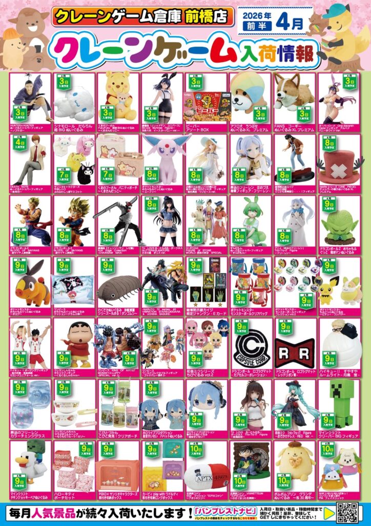🌸お待たせ致しました🌸 クレーンゲーム倉庫前橋店 4月…