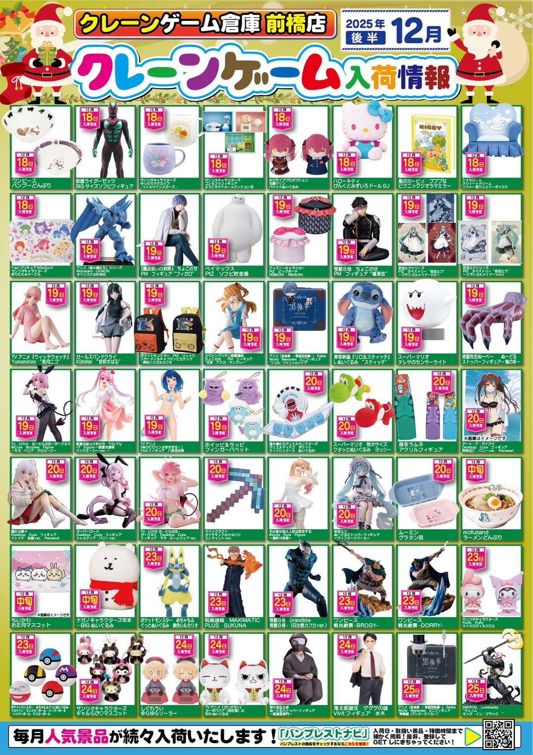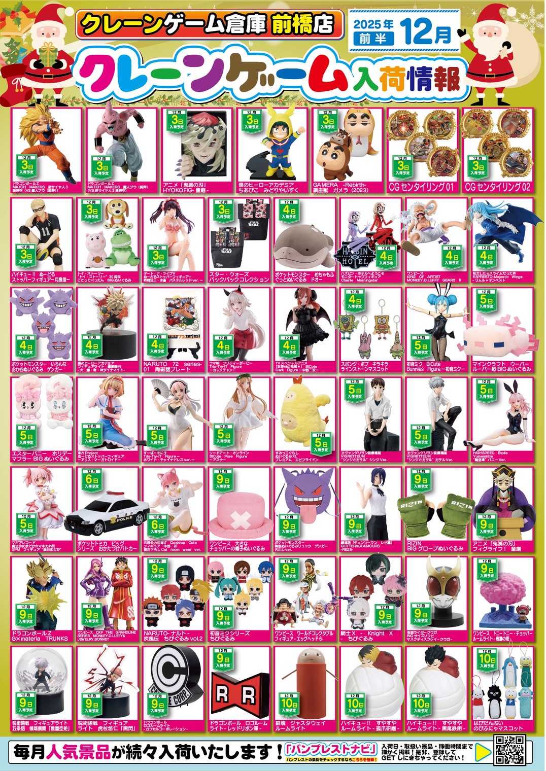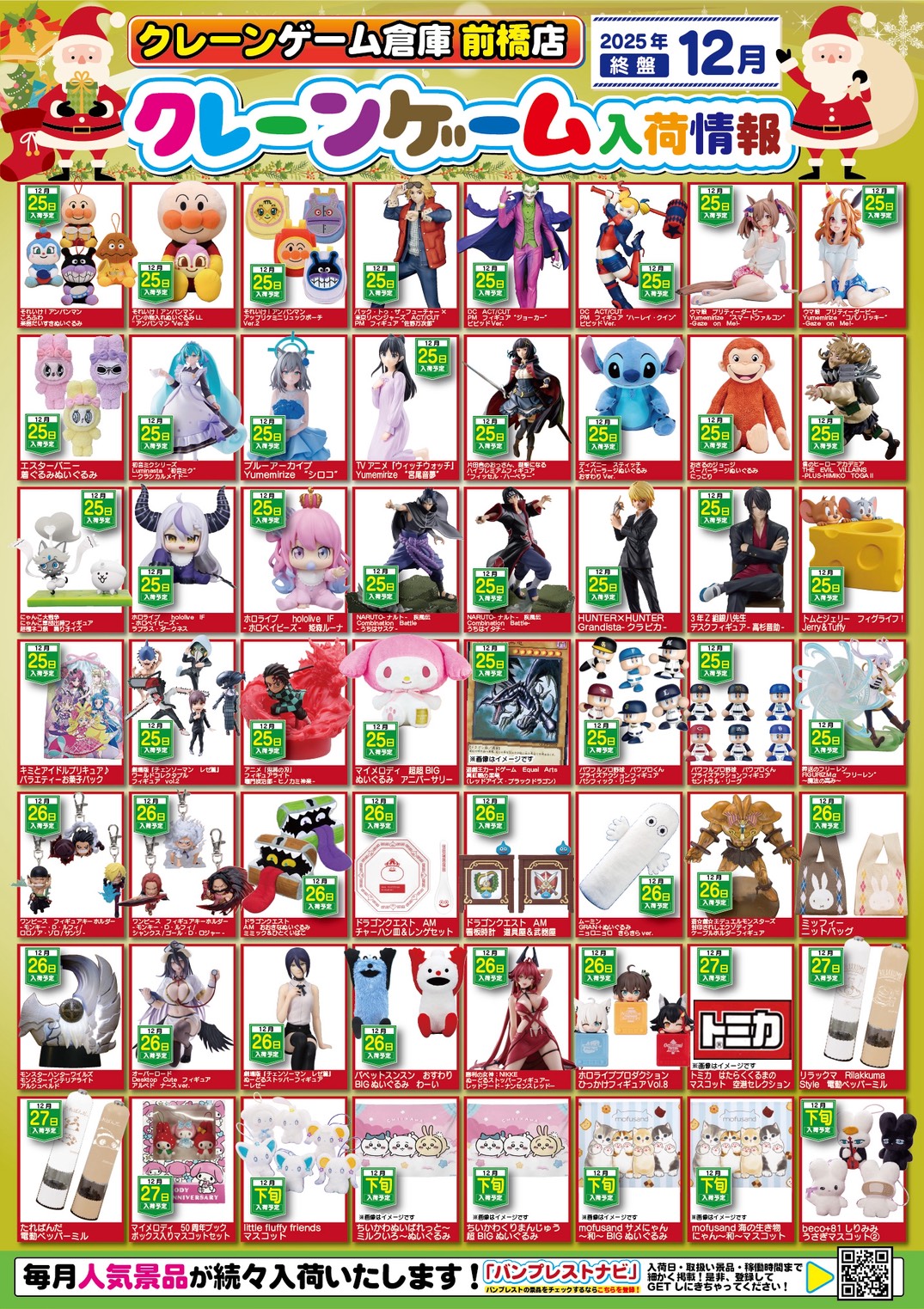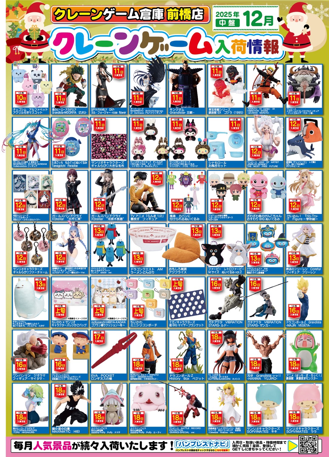 クレーンゲーム倉庫前橋店 12月の景品入荷予定となります! アミューズ クレーンゲーム倉庫前橋店 2025年12月3日 🔥お待たせ致しました🔥 クレーンゲーム倉庫前橋店 12月の景品入荷予定となります! ⚠️入荷月日変更、発売延期、発売中止等の可能性もございます⚠️